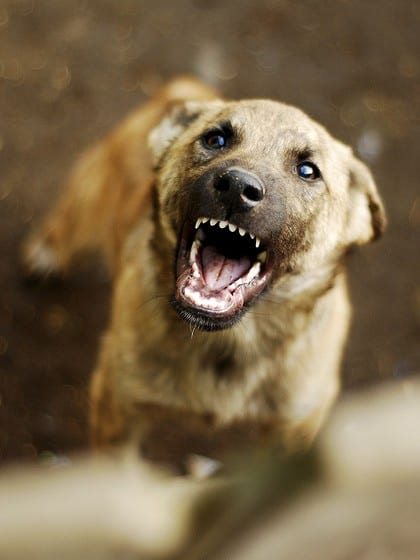 Se abbiamo già sfidato il cane (estraneo) ottenendo una risposta aggressiva (ringhio), “ritiriamo” immediatamente la sfida mandando segnali di sottomissione: abbassiamoci sulle ginocchia, guardiamo per terra, allontaniamoci lentamente.